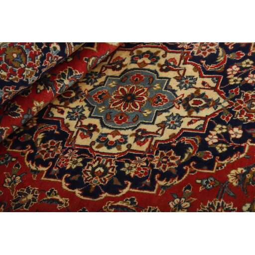 Keshan a toujours été célèbre pour son artisanat. Les villages se situent sur la route principale entre Ghom et Ispahan, dans le centre de l'Iran. À l'est, la région borde le plus grand désert d'Iran. Malgré le déclin de cet artisanat particulier au cours du XXe siècle, de nombreux tapis Keshan magnifiques sont toujours fabriqués conformément aux traditions des anciens maîtres, par exemple décorés de magnifiques motifs en médaillon ou de tapisseries représentant des motifs humains et animaux. Les motifs sont le plus souvent tissés autour d'un médaillon au centre du tapis, dont certains se répètent dans les coins. Les autres champs sont densément décorés de fleurs et de vignes réalistes. La bordure principale présente souvent le motif « Herati » (une feuille arquée), tandis que les bordures secondaires présentent des rosettes. Le rouge brique et le bleu foncé sont les couleurs de base les plus courantes. Keshan est une ville d'environ 300 000 habitants, située dans la province d'Ispahan, dans le centre de l'Iran. Elle est plutôt basse et il fait très chaud en été. Traditionnellement, les gens ont cherché à remédier à ce problème en construisant les maisons dans le sol. Keshan produit des tapis en laine et en soie. Les premiers ont une chaîne et une trame en coton, la trame étant bleue. Plusieurs qualités sont produites, mais la plupart des tapis Keshan sont très finement noués et entièrement couvrants. La forme d'un médaillon Keshan est assez particulière ; elle est faite d'une alternance de lignes courbes et d'angles droits. Les couleurs les plus courantes sont un champ rouge et un médaillon bleu, avec des détails secondaires dans d'autres couleurs. Les garnitures d'un tapis Keshan sont également spéciales ; la garniture principale est normalement entourée de rayures qui forment un motif géométrique, généralement de petits triangles bleus et rouges. Les tapis Keshan existent dans toutes les tailles. La ville de Natanez, au sud-est du pays, a donné son nom à des tapis d'image réalisés avec le même nouage que les Keshan.