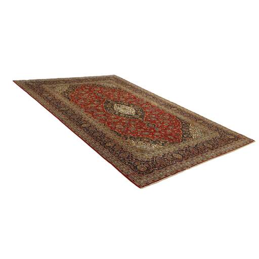 Keshan a toujours été célèbre pour son artisanat. Les villages se situent sur la route principale entre Ghom et Ispahan, dans le centre de l'Iran. À l'est, la région borde le plus grand désert d'Iran. Malgré le déclin de cet artisanat particulier au cours du XXe siècle, de nombreux tapis Keshan magnifiques sont toujours fabriqués conformément aux traditions des anciens maîtres, par exemple décorés de magnifiques motifs en médaillon ou de tapisseries représentant des motifs humains et animaux. Les motifs sont le plus souvent tissés autour d'un médaillon au centre du tapis, dont certains se répètent dans les coins. Les autres champs sont densément décorés de fleurs et de vignes réalistes. La bordure principale présente souvent le motif « Herati » (une feuille arquée), tandis que les bordures secondaires présentent des rosettes. Le rouge brique et le bleu foncé sont les couleurs de base les plus courantes. Keshan est une ville d'environ 300 000 habitants, située dans la province d'Ispahan, dans le centre de l'Iran. Elle est plutôt basse et il fait très chaud en été. Traditionnellement, les gens ont cherché à remédier à ce problème en construisant les maisons dans le sol. Keshan produit des tapis en laine et en soie. Les premiers ont une chaîne et une trame en coton, la trame étant bleue. Plusieurs qualités sont produites, mais la plupart des tapis Keshan sont très finement noués et entièrement couvrants. La forme d'un médaillon Keshan est assez particulière ; elle est faite d'une alternance de lignes courbes et d'angles droits. Les couleurs les plus courantes sont un champ rouge et un médaillon bleu, avec des détails secondaires dans d'autres couleurs. Les garnitures d'un tapis Keshan sont également spéciales ; la garniture principale est normalement entourée de rayures qui forment un motif géométrique, généralement de petits triangles bleus et rouges. Les tapis Keshan existent dans toutes les tailles. La ville de Natanez, au sud-est du pays, a donné son nom à des tapis d'image réalisés avec le même nouage que les Keshan.