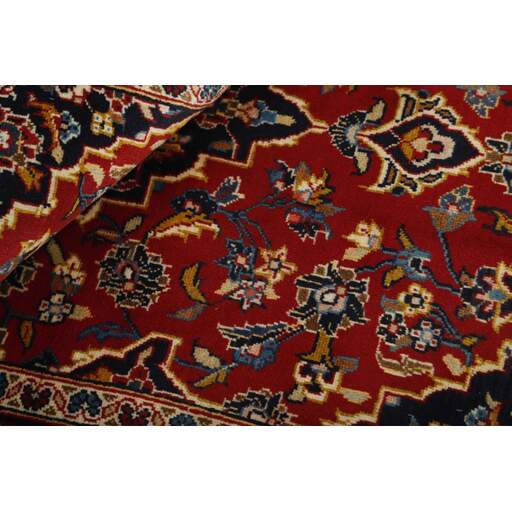 Keshan a toujours été célèbre pour son artisanat. Les villages se situent sur la route principale entre Ghom et Ispahan, dans le centre de l'Iran. À l'est, la région borde le plus grand désert d'Iran. Malgré le déclin de cet artisanat particulier au cours du XXe siècle, de nombreux tapis Keshan magnifiques sont toujours fabriqués conformément aux traditions des anciens maîtres, par exemple décorés de magnifiques motifs en médaillon ou de tapisseries représentant des motifs humains et animaux. Les motifs sont le plus souvent tissés autour d'un médaillon au centre du tapis, dont certains se répètent dans les coins. Les autres champs sont densément décorés de fleurs et de vignes réalistes. La bordure principale présente souvent le motif « Herati » (une feuille arquée), tandis que les bordures secondaires présentent des rosettes. Le rouge brique et le bleu foncé sont les couleurs de base les plus courantes. Keshan est une ville d'environ 300 000 habitants, située dans la province d'Ispahan, dans le centre de l'Iran. Elle est plutôt basse et il fait très chaud en été. Traditionnellement, les gens ont cherché à remédier à ce problème en construisant les maisons dans le sol. Keshan produit des tapis en laine et en soie. Les premiers ont une chaîne et une trame en coton, la trame étant bleue. Plusieurs qualités sont produites, mais la plupart des tapis Keshan sont très finement noués et entièrement couvrants. La forme d'un médaillon Keshan est assez particulière ; elle est faite d'une alternance de lignes courbes et d'angles droits. Les couleurs les plus courantes sont un champ rouge et un médaillon bleu, avec des détails secondaires dans d'autres couleurs. Les garnitures d'un tapis Keshan sont également spéciales ; la garniture principale est normalement entourée de rayures qui forment un motif géométrique, généralement de petits triangles bleus et rouges. Les tapis Keshan existent dans toutes les tailles. La ville de Natanez, au sud-est du pays, a donné son nom à des tapis d'image réalisés avec le même nouage que les Keshan.