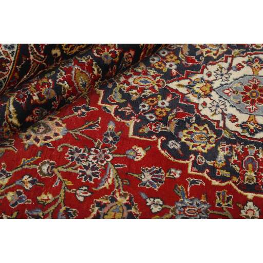 Keshan a toujours été célèbre pour son artisanat. Les villages se situent sur la route principale entre Ghom et Ispahan, dans le centre de l'Iran. À l'est, la région borde le plus grand désert d'Iran. Malgré le déclin de cet artisanat particulier au cours du XXe siècle, de nombreux tapis Keshan magnifiques sont toujours fabriqués conformément aux traditions des anciens maîtres, par exemple décorés de magnifiques motifs en médaillon ou de tapisseries représentant des motifs humains et animaux. Les motifs sont le plus souvent tissés autour d'un médaillon au centre du tapis, dont certains se répètent dans les coins. Les autres champs sont densément décorés de fleurs et de vignes réalistes. La bordure principale présente souvent le motif « Herati » (une feuille arquée), tandis que les bordures secondaires présentent des rosettes. Le rouge brique et le bleu foncé sont les couleurs de base les plus courantes. Keshan est une ville d'environ 300 000 habitants, située dans la province d'Ispahan, dans le centre de l'Iran. Elle est plutôt basse et il fait très chaud en été. Traditionnellement, les gens ont cherché à remédier à ce problème en construisant les maisons dans le sol. Keshan produit des tapis en laine et en soie. Les premiers ont une chaîne et une trame en coton, la trame étant bleue. Plusieurs qualités sont produites, mais la plupart des tapis Keshan sont très finement noués et entièrement couvrants. La forme d'un médaillon Keshan est assez particulière ; elle est faite d'une alternance de lignes courbes et d'angles droits. Les couleurs les plus courantes sont un champ rouge et un médaillon bleu, avec des détails secondaires dans d'autres couleurs. Les garnitures d'un tapis Keshan sont également spéciales ; la garniture principale est normalement entourée de rayures qui forment un motif géométrique, généralement de petits triangles bleus et rouges. Les tapis Keshan existent dans toutes les tailles. La ville de Natanez, au sud-est du pays, a donné son nom à des tapis d'image réalisés avec le même nouage que les Keshan.