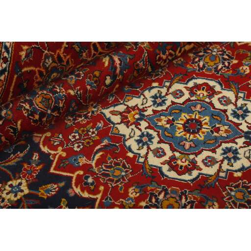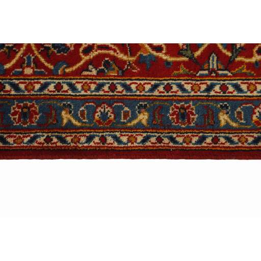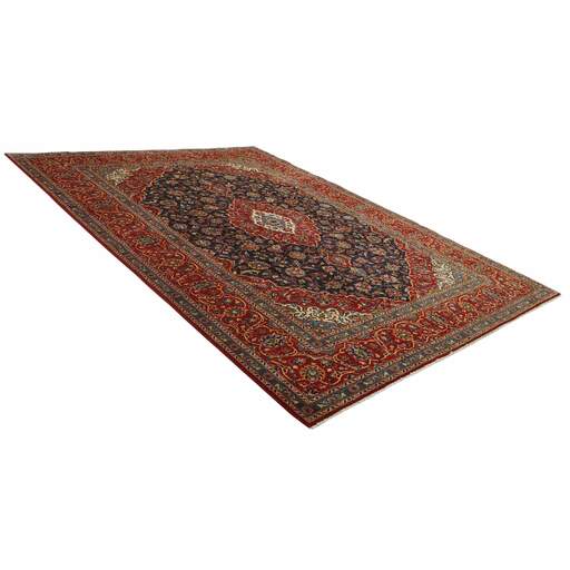 Keshan a toujours été célèbre pour son artisanat. Les villages se situent sur la route principale entre Ghom et Ispahan, dans le centre de l'Iran. À l'est, la région borde le plus grand désert d'Iran. Malgré le déclin de cet artisanat particulier au cours du XXe siècle, de nombreux tapis Keshan magnifiques sont toujours fabriqués conformément aux traditions des anciens maîtres, par exemple décorés de magnifiques motifs en médaillon ou de tapisseries représentant des motifs humains et animaux. Les motifs sont le plus souvent tissés autour d'un médaillon au centre du tapis, dont certains se répètent dans les coins. Les autres champs sont densément décorés de fleurs et de vignes réalistes. La bordure principale présente souvent le motif « Herati » (une feuille arquée), tandis que les bordures secondaires présentent des rosettes. Le rouge brique et le bleu foncé sont les couleurs de base les plus courantes. Keshan est une ville d'environ 300 000 habitants, située dans la province d'Ispahan, dans le centre de l'Iran. Elle est plutôt basse et il fait très chaud en été. Traditionnellement, les gens ont cherché à remédier à ce problème en construisant les maisons dans le sol. Keshan produit des tapis en laine et en soie. Les premiers ont une chaîne et une trame en coton, la trame étant bleue. Plusieurs qualités sont produites, mais la plupart des tapis Keshan sont très finement noués et entièrement couvrants. La forme d'un médaillon Keshan est assez particulière ; elle est faite d'une alternance de lignes courbes et d'angles droits. Les couleurs les plus courantes sont un champ rouge et un médaillon bleu, avec des détails secondaires dans d'autres couleurs. Les garnitures d'un tapis Keshan sont également spéciales ; la garniture principale est normalement entourée de rayures qui forment un motif géométrique, généralement de petits triangles bleus et rouges. Les tapis Keshan existent dans toutes les tailles. La ville de Natanez, au sud-est du pays, a donné son nom à des tapis d'image réalisés avec le même nouage que les Keshan.