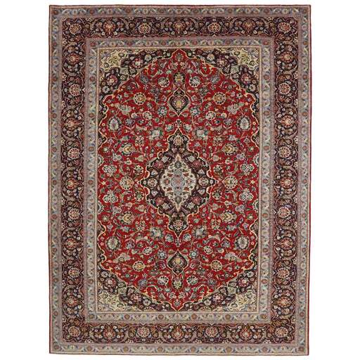 Keshan a toujours été célèbre pour son artisanat. Les villages se situent sur la route principale entre Ghom et Ispahan, dans le centre de l'Iran. À l'est, la région borde le plus grand désert d'Iran. Malgré le déclin de cet artisanat particulier au cours du XXe siècle, de nombreux tapis Keshan magnifiques sont toujours fabriqués conformément aux traditions des anciens maîtres, par exemple décorés de magnifiques motifs en médaillon ou de tapisseries représentant des motifs humains et animaux. Les motifs sont le plus souvent tissés autour d'un médaillon au centre du tapis, dont certains se répètent dans les coins. Les autres champs sont densément décorés de fleurs et de vignes réalistes. La bordure principale présente souvent le motif « Herati » (une feuille arquée), tandis que les bordures secondaires présentent des rosettes. Le rouge brique et le bleu foncé sont les couleurs de base les plus courantes. Keshan est une ville d'environ 300 000 habitants, située dans la province d'Ispahan, dans le centre de l'Iran. Elle est plutôt basse et il fait très chaud en été. Traditionnellement, les gens ont cherché à remédier à ce problème en construisant les maisons dans le sol. Keshan produit des tapis en laine et en soie. Les premiers ont une chaîne et une trame en coton, la trame étant bleue. Plusieurs qualités sont produites, mais la plupart des tapis Keshan sont très finement noués et entièrement couvrants. La forme d'un médaillon Keshan est assez particulière ; elle est faite d'une alternance de lignes courbes et d'angles droits. Les couleurs les plus courantes sont un champ rouge et un médaillon bleu, avec des détails secondaires dans d'autres couleurs. Les garnitures d'un tapis Keshan sont également spéciales ; la garniture principale est normalement entourée de rayures qui forment un motif géométrique, généralement de petits triangles bleus et rouges. Les tapis Keshan existent dans toutes les tailles. La ville de Natanez, au sud-est du pays, a donné son nom à des tapis d'image réalisés avec le même nouage que les Keshan.