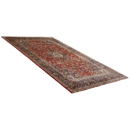 Keshan a toujours été célèbre pour son artisanat. Les villages se situent sur la route principale entre Ghom et Ispahan, dans le centre de l'Iran. À l'est, la région borde le plus grand désert d'Iran. Malgré le déclin de cet artisanat particulier au cours du XXe siècle, de nombreux tapis Keshan magnifiques sont toujours fabriqués conformément aux traditions des anciens maîtres, par exemple décorés de magnifiques motifs en médaillon ou de tapisseries représentant des motifs humains et animaux. Les motifs sont le plus souvent tissés autour d'un médaillon au centre du tapis, dont certains se répètent dans les coins. Les autres champs sont densément décorés de fleurs et de vignes réalistes. La bordure principale présente souvent le motif « Herati » (une feuille arquée), tandis que les bordures secondaires présentent des rosettes. Le rouge brique et le bleu foncé sont les couleurs de base les plus courantes. Keshan est une ville d'environ 300 000 habitants, située dans la province d'Ispahan, dans le centre de l'Iran. Elle est plutôt basse et il fait très chaud en été. Traditionnellement, les gens ont cherché à remédier à ce problème en construisant les maisons dans le sol. Keshan produit des tapis en laine et en soie. Les premiers ont une chaîne et une trame en coton, la trame étant bleue. Plusieurs qualités sont produites, mais la plupart des tapis Keshan sont très finement noués et entièrement couvrants. La forme d'un médaillon Keshan est assez particulière ; elle est faite d'une alternance de lignes courbes et d'angles droits. Les couleurs les plus courantes sont un champ rouge et un médaillon bleu, avec des détails secondaires dans d'autres couleurs. Les garnitures d'un tapis Keshan sont également spéciales ; la garniture principale est normalement entourée de rayures qui forment un motif géométrique, généralement de petits triangles bleus et rouges. Les tapis Keshan existent dans toutes les tailles. La ville de Natanez, au sud-est du pays, a donné son nom à des tapis d'image réalisés avec le même nouage que les Keshan.
