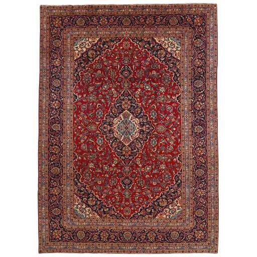 Keshan a toujours été célèbre pour son artisanat. Les villages se situent sur la route principale entre Ghom et Ispahan, dans le centre de l'Iran. À l'est, la région borde le plus grand désert d'Iran. Malgré le déclin de cet artisanat particulier au cours du XXe siècle, de nombreux tapis Keshan magnifiques sont toujours fabriqués conformément aux traditions des anciens maîtres, par exemple décorés de magnifiques motifs en médaillon ou de tapisseries représentant des motifs humains et animaux. Les motifs sont le plus souvent tissés autour d'un médaillon au centre du tapis, dont certains se répètent dans les coins. Les autres champs sont densément décorés de fleurs et de vignes réalistes. La bordure principale présente souvent le motif « Herati » (une feuille arquée), tandis que les bordures secondaires présentent des rosettes. Le rouge brique et le bleu foncé sont les couleurs de base les plus courantes. Keshan est une ville d'environ 300 000 habitants, située dans la province d'Ispahan, dans le centre de l'Iran. Elle est plutôt basse et il fait très chaud en été. Traditionnellement, les gens ont cherché à remédier à ce problème en construisant les maisons dans le sol. Keshan produit des tapis en laine et en soie. Les premiers ont une chaîne et une trame en coton, la trame étant bleue. Plusieurs qualités sont produites, mais la plupart des tapis Keshan sont très finement noués et entièrement couvrants. La forme d'un médaillon Keshan est assez particulière ; elle est faite d'une alternance de lignes courbes et d'angles droits. Les couleurs les plus courantes sont un champ rouge et un médaillon bleu, avec des détails secondaires dans d'autres couleurs. Les garnitures d'un tapis Keshan sont également spéciales ; la garniture principale est normalement entourée de rayures qui forment un motif géométrique, généralement de petits triangles bleus et rouges. Les tapis Keshan existent dans toutes les tailles. La ville de Natanez, au sud-est du pays, a donné son nom à des tapis d'image réalisés avec le même nouage que les Keshan.