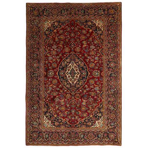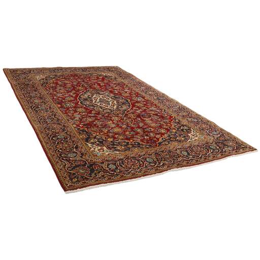 Keshan a toujours été célèbre pour son artisanat. Les villages se situent sur la route principale entre Ghom et Ispahan, dans le centre de l'Iran. À l'est, la région borde le plus grand désert d'Iran. Malgré le déclin de cet artisanat particulier au cours du XXe siècle, de nombreux tapis Keshan magnifiques sont toujours fabriqués conformément aux traditions des anciens maîtres, par exemple décorés de magnifiques motifs en médaillon ou de tapisseries représentant des motifs humains et animaux. Les motifs sont le plus souvent tissés autour d'un médaillon au centre du tapis, dont certains se répètent dans les coins. Les autres champs sont densément décorés de fleurs et de vignes réalistes. La bordure principale présente souvent le motif « Herati » (une feuille arquée), tandis que les bordures secondaires présentent des rosettes. Le rouge brique et le bleu foncé sont les couleurs de base les plus courantes. Keshan est une ville d'environ 300 000 habitants, située dans la province d'Ispahan, dans le centre de l'Iran. Elle est plutôt basse et il fait très chaud en été. Traditionnellement, les gens ont cherché à remédier à ce problème en construisant les maisons dans le sol. Keshan produit des tapis en laine et en soie. Les premiers ont une chaîne et une trame en coton, la trame étant bleue. Plusieurs qualités sont produites, mais la plupart des tapis Keshan sont très finement noués et entièrement couvrants. La forme d'un médaillon Keshan est assez particulière ; elle est faite d'une alternance de lignes courbes et d'angles droits. Les couleurs les plus courantes sont un champ rouge et un médaillon bleu, avec des détails secondaires dans d'autres couleurs. Les garnitures d'un tapis Keshan sont également spéciales ; la garniture principale est normalement entourée de rayures qui forment un motif géométrique, généralement de petits triangles bleus et rouges. Les tapis Keshan existent dans toutes les tailles. La ville de Natanez, au sud-est du pays, a donné son nom à des tapis d'image réalisés avec le même nouage que les Keshan.