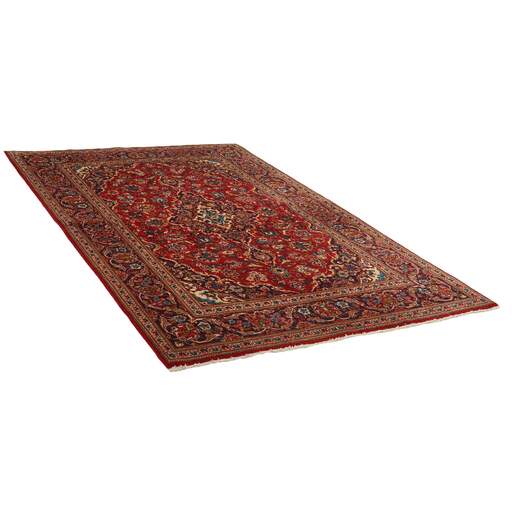 Keshan a toujours été célèbre pour son artisanat. Les villages se situent sur la route principale entre Ghom et Ispahan, dans le centre de l'Iran. À l'est, la région borde le plus grand désert d'Iran. Malgré le déclin de cet artisanat particulier au cours du XXe siècle, de nombreux tapis Keshan magnifiques sont toujours fabriqués conformément aux traditions des anciens maîtres, par exemple décorés de magnifiques motifs en médaillon ou de tapisseries représentant des motifs humains et animaux. Les motifs sont le plus souvent tissés autour d'un médaillon au centre du tapis, dont certains se répètent dans les coins. Les autres champs sont densément décorés de fleurs et de vignes réalistes. La bordure principale présente souvent le motif « Herati » (une feuille arquée), tandis que les bordures secondaires présentent des rosettes. Le rouge brique et le bleu foncé sont les couleurs de base les plus courantes. Keshan est une ville d'environ 300 000 habitants, située dans la province d'Ispahan, dans le centre de l'Iran. Elle est plutôt basse et il fait très chaud en été. Traditionnellement, les gens ont cherché à remédier à ce problème en construisant les maisons dans le sol. Keshan produit des tapis en laine et en soie. Les premiers ont une chaîne et une trame en coton, la trame étant bleue. Plusieurs qualités sont produites, mais la plupart des tapis Keshan sont très finement noués et entièrement couvrants. La forme d'un médaillon Keshan est assez particulière ; elle est faite d'une alternance de lignes courbes et d'angles droits. Les couleurs les plus courantes sont un champ rouge et un médaillon bleu, avec des détails secondaires dans d'autres couleurs. Les garnitures d'un tapis Keshan sont également spéciales ; la garniture principale est normalement entourée de rayures qui forment un motif géométrique, généralement de petits triangles bleus et rouges. Les tapis Keshan existent dans toutes les tailles. La ville de Natanez, au sud-est du pays, a donné son nom à des tapis d'image réalisés avec le même nouage que les Keshan.