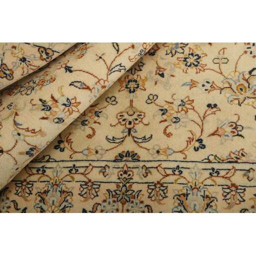 Keshan a toujours été célèbre pour son artisanat. Les villages se situent sur la route principale entre Ghom et Ispahan, dans le centre de l'Iran. À l'est, la région borde le plus grand désert d'Iran. Malgré le déclin de cet artisanat particulier au cours du XXe siècle, de nombreux tapis Keshan magnifiques sont toujours fabriqués conformément aux traditions des anciens maîtres, par exemple décorés de magnifiques motifs en médaillon ou de tapisseries représentant des motifs humains et animaux. Les motifs sont le plus souvent tissés autour d'un médaillon au centre du tapis, dont certains se répètent dans les coins. Les autres champs sont densément décorés de fleurs et de vignes réalistes. La bordure principale présente souvent le motif « Herati » (une feuille arquée), tandis que les bordures secondaires présentent des rosettes. Le rouge brique et le bleu foncé sont les couleurs de base les plus courantes. Keshan est une ville d'environ 300 000 habitants, située dans la province d'Ispahan, dans le centre de l'Iran. Elle est plutôt basse et il fait très chaud en été. Traditionnellement, les gens ont cherché à remédier à ce problème en construisant les maisons dans le sol. Keshan produit des tapis en laine et en soie. Les premiers ont une chaîne et une trame en coton, la trame étant bleue. Plusieurs qualités sont produites, mais la plupart des tapis Keshan sont très finement noués et entièrement couvrants. La forme d'un médaillon Keshan est assez particulière ; elle est faite d'une alternance de lignes courbes et d'angles droits. Les couleurs les plus courantes sont un champ rouge et un médaillon bleu, avec des détails secondaires dans d'autres couleurs. Les garnitures d'un tapis Keshan sont également spéciales ; la garniture principale est normalement entourée de rayures qui forment un motif géométrique, généralement de petits triangles bleus et rouges. Les tapis Keshan existent dans toutes les tailles. La ville de Natanez, au sud-est du pays, a donné son nom à des tapis d'image réalisés avec le même nouage que les Keshan.