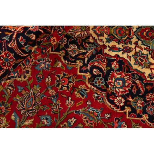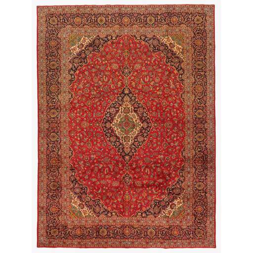 Keshan a toujours été célèbre pour son artisanat. Les villages se situent sur la route principale entre Ghom et Ispahan, dans le centre de l'Iran. À l'est, la région borde le plus grand désert d'Iran. Malgré le déclin de cet artisanat particulier au cours du XXe siècle, de nombreux tapis Keshan magnifiques sont toujours fabriqués conformément aux traditions des anciens maîtres, par exemple décorés de magnifiques motifs en médaillon ou de tapisseries représentant des motifs humains et animaux. Les motifs sont le plus souvent tissés autour d'un médaillon au centre du tapis, dont certains se répètent dans les coins. Les autres champs sont densément décorés de fleurs et de vignes réalistes. La bordure principale présente souvent le motif « Herati » (une feuille arquée), tandis que les bordures secondaires présentent des rosettes. Le rouge brique et le bleu foncé sont les couleurs de base les plus courantes. Keshan est une ville d'environ 300 000 habitants, située dans la province d'Ispahan, dans le centre de l'Iran. Elle est plutôt basse et il fait très chaud en été. Traditionnellement, les gens ont cherché à remédier à ce problème en construisant les maisons dans le sol. Keshan produit des tapis en laine et en soie. Les premiers ont une chaîne et une trame en coton, la trame étant bleue. Plusieurs qualités sont produites, mais la plupart des tapis Keshan sont très finement noués et entièrement couvrants. La forme d'un médaillon Keshan est assez particulière ; elle est faite d'une alternance de lignes courbes et d'angles droits. Les couleurs les plus courantes sont un champ rouge et un médaillon bleu, avec des détails secondaires dans d'autres couleurs. Les garnitures d'un tapis Keshan sont également spéciales ; la garniture principale est normalement entourée de rayures qui forment un motif géométrique, généralement de petits triangles bleus et rouges. Les tapis Keshan existent dans toutes les tailles. La ville de Natanez, au sud-est du pays, a donné son nom à des tapis d'image réalisés avec le même nouage que les Keshan.