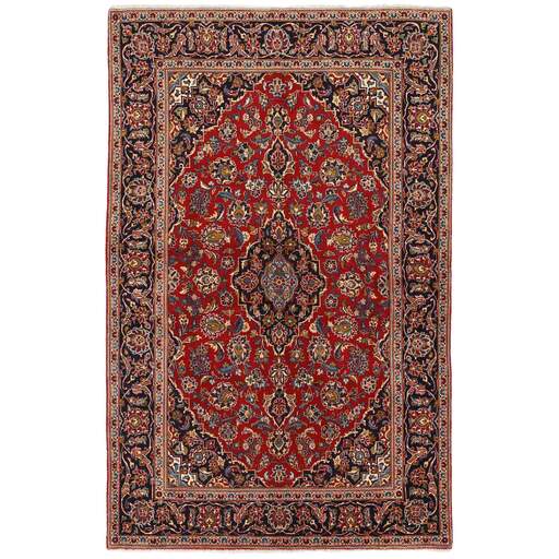 Keshan a toujours été célèbre pour son artisanat. Les villages se situent sur la route principale entre Ghom et Ispahan, dans le centre de l'Iran. À l'est, la région borde le plus grand désert d'Iran. Malgré le déclin de cet artisanat particulier au cours du XXe siècle, de nombreux tapis Keshan magnifiques sont toujours fabriqués conformément aux traditions des anciens maîtres, par exemple décorés de magnifiques motifs en médaillon ou de tapisseries représentant des motifs humains et animaux. Les motifs sont le plus souvent tissés autour d'un médaillon au centre du tapis, dont certains se répètent dans les coins. Les autres champs sont densément décorés de fleurs et de vignes réalistes. La bordure principale présente souvent le motif « Herati » (une feuille arquée), tandis que les bordures secondaires présentent des rosettes. Le rouge brique et le bleu foncé sont les couleurs de base les plus courantes. Keshan est une ville d'environ 300 000 habitants, située dans la province d'Ispahan, dans le centre de l'Iran. Elle est plutôt basse et il fait très chaud en été. Traditionnellement, les gens ont cherché à remédier à ce problème en construisant les maisons dans le sol. Keshan produit des tapis en laine et en soie. Les premiers ont une chaîne et une trame en coton, la trame étant bleue. Plusieurs qualités sont produites, mais la plupart des tapis Keshan sont très finement noués et entièrement couvrants. La forme d'un médaillon Keshan est assez particulière ; elle est faite d'une alternance de lignes courbes et d'angles droits. Les couleurs les plus courantes sont un champ rouge et un médaillon bleu, avec des détails secondaires dans d'autres couleurs. Les garnitures d'un tapis Keshan sont également spéciales ; la garniture principale est normalement entourée de rayures qui forment un motif géométrique, généralement de petits triangles bleus et rouges. Les tapis Keshan existent dans toutes les tailles. La ville de Natanez, au sud-est du pays, a donné son nom à des tapis d'image réalisés avec le même nouage que les Keshan.