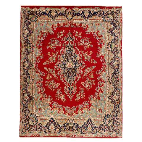 La ville de Kerman se situe dans le sud-est de l'Iran, à la lisière du désert de Kavir-e-Lut. C'est la capitale de la province de Kerman, qui compte environ un demi-million d'habitants. Son isolement géographique a permis la préservation de nombreux monuments – on compterait 90 mosquées – et un mausolée du XVe siècle à proximité de Mahan serait le plus bel édifice d'Iran. Comme Yazd au nord-ouest, Kerman compte une importante population de zoroastriens, qui adhèrent à l'ancienne religion iranienne, remplacée dans d'autres endroits par l'islam. La silhouette de Kerman est caractérisée par ses tours à vent – des constructions en forme de cheminée utilisées pour capter chaque brise et la conduire jusqu'aux parties intérieures de la maison. Kerman a une ancienne tradition textile, et des châles ont été tissés pendant une grande partie du XIXe siècle. Lorsque la demande de châles a chuté, les tisserands ont changé leurs métiers à tisser pour la production de tapis. Au début, ils utilisaient les mêmes motifs que pour les châles, mais ils les ont adaptés au gré des changements de mode, même si les tapis de Kerman ont conservé leurs couleurs et motifs délicats. Toutes les tailles sont fabriquées. Les plus grands tapis ont des couleurs et des motifs uniques et sont souvent noués dans les villes du nord de Lavar ou Ravar. Outre les motifs des châles, Kerman propose souvent des adaptations du motif Boteh avec des bouquets de fleurs naturelles ou des adaptations de motifs de tapis classiques. Une large gamme de couleurs délicates est utilisée. Le velours est généralement doux, comme du velours de laine, tandis que la chaîne et la trame sont toujours en coton.