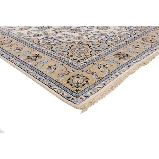 Les tapis Nain Royals sont des tapis classiques noués à la main de Bhadohi en Inde, avec des motifs inspirés des tapis persans Nain originaux. Les couleurs sont raffinées ; nuances d'ivoire et de crème, avec de petites zones de rouge, de vert et de bleu. Comme les tapis originaux Nain et Isfahan, les motifs des Nain Royal sont classiques.