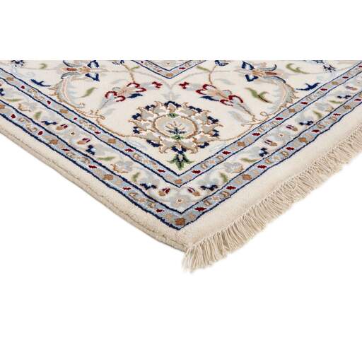 Les tapis Nain Royals sont des tapis classiques noués à la main de Bhadohi en Inde, avec des motifs inspirés des tapis persans Nain originaux. Les couleurs sont raffinées ; nuances d'ivoire et de crème, avec de petites zones de rouge, de vert et de bleu. Comme les tapis originaux Nain et Isfahan, les motifs des Nain Royal sont classiques.