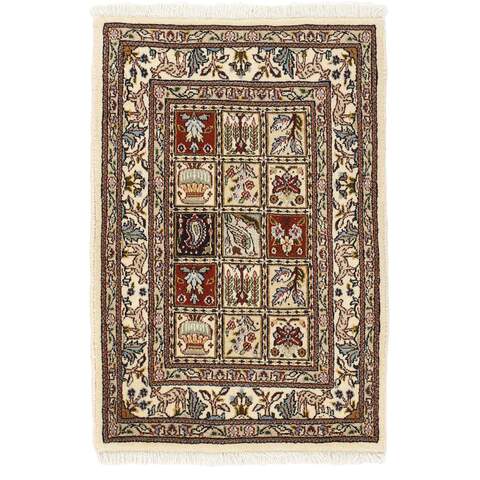 Moud est une petite ville au sud de Mashad, dans la province de Khorrasan. Les tapis de cette région se caractérisent par l'homogénéité de leurs motifs et de leur qualité. La chaîne et la trame sont en coton et le velours en laine. Les bordures sont une version de la bordure persane traditionnelle en tortue. Les tapis sont fabriqués dans toutes les tailles. Les tapis Moud sont souvent copiés en Inde, en raison de leur remarquable homogénéité. Les motifs caractéristiques de Moud sont parmi les plus uniformes, les plus réguliers et les plus facilement reconnaissables de la province de Khorrasan. Les Moud Mahi sont fabriqués dans des tons beige, rouge clair ou bleu, avec des motifs Mahi sur toute la surface ou avec un médaillon en forme d'étoile. Mahi signifie poisson et le motif Mahi est le motif le plus couramment utilisé dans les véritables tapis persans. En l'observant de près, vous pouvez voir un étang entouré de quatre poissons.