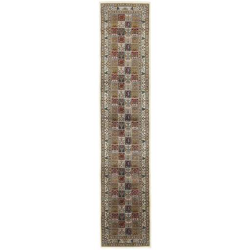 Moud est une petite ville au sud de Mashad, dans la province de Khorrasan. Les tapis de cette région se caractérisent par l'homogénéité de leurs motifs et de leur qualité. La chaîne et la trame sont en coton et le velours en laine. Les bordures sont une version de la bordure persane traditionnelle en tortue. Les tapis sont fabriqués dans toutes les tailles. Les tapis Moud sont souvent copiés en Inde, en raison de leur remarquable homogénéité. Les motifs caractéristiques de Moud sont parmi les plus uniformes, les plus réguliers et les plus facilement reconnaissables de la province de Khorrasan. Les Moud Mahi sont fabriqués dans des tons beige, rouge clair ou bleu, avec des motifs Mahi sur toute la surface ou avec un médaillon en forme d'étoile. Mahi signifie poisson et le motif Mahi est le motif le plus couramment utilisé dans les véritables tapis persans. En l'observant de près, vous pouvez voir un étang entouré de quatre poissons.