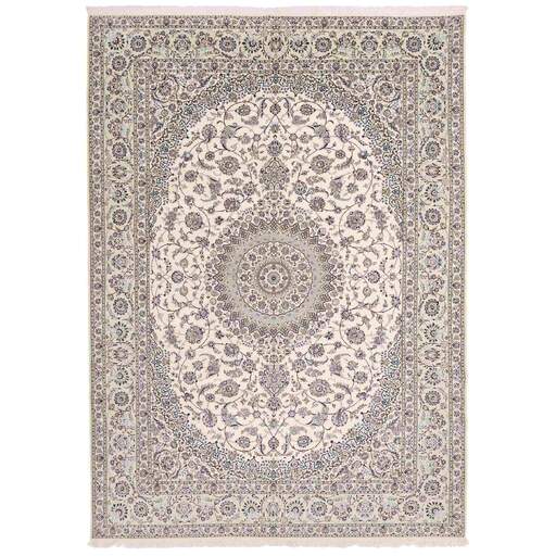 Naïn est une ville d'environ 50 000 habitants, située dans la province d'Ispahan. Elle a une importance historique, car c'était la dernière étape des routes caravanières avant Kavir-a-Lut, l'un des déserts qui s'étendent à travers le centre de l'Iran. La mosquée de Naïn est l'une des plus anciennes d'Iran et est bien mieux construite que les mosquées plus récentes et plus célèbres d'Ispahan. L'industrie de Naïn était traditionnellement axée sur la production de vêtements en laine, mais les tisserands se sont tournés vers la production de tapis lorsque la demande a chuté. Leurs nouveaux produits sont rapidement devenus célèbres, car les tisserands étaient qualifiés et utilisaient des matériaux de bonne qualité. La chaîne et la trame sont en coton, avec un velours en laine et des contours en soie. Parfois, la soie est davantage utilisée dans la base. Les couleurs sont raffinées ; des nuances d'ivoire et de crème, avec de petites zones de rouge, de vert et de bleu. Comme pour les tapis d'Ispahan, les motifs des tapis de Naïn sont également classiques. Les tapis Nain sont fabriqués dans toutes les tailles, y compris les très grands tapis allant jusqu'à 60 m², et certains d'entre eux ont un velours en soie pure. Le plus grand tapis Nain produit mesurait 20 mètres sur 20.