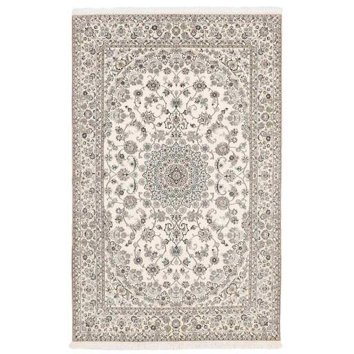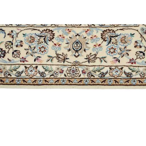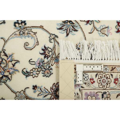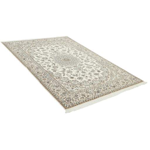 Naïn est une ville d'environ 50 000 habitants, située dans la province d'Ispahan. Elle a une importance historique, car c'était la dernière étape des routes caravanières avant Kavir-a-Lut, l'un des déserts qui s'étendent à travers le centre de l'Iran. La mosquée de Naïn est l'une des plus anciennes d'Iran et est bien mieux construite que les mosquées plus récentes et plus célèbres d'Ispahan. L'industrie de Naïn était traditionnellement axée sur la production de vêtements en laine, mais les tisserands se sont tournés vers la production de tapis lorsque la demande a chuté. Leurs nouveaux produits sont rapidement devenus célèbres, car les tisserands étaient qualifiés et utilisaient des matériaux de bonne qualité. La chaîne et la trame sont en coton, avec un velours en laine et des contours en soie. Parfois, la soie est davantage utilisée dans la base. Les couleurs sont raffinées ; des nuances d'ivoire et de crème, avec de petites zones de rouge, de vert et de bleu. Comme pour les tapis d'Ispahan, les motifs des tapis de Naïn sont également classiques. Les tapis Nain sont fabriqués dans toutes les tailles, y compris les très grands tapis allant jusqu'à 60 m², et certains d'entre eux ont un velours en soie pure. Le plus grand tapis Nain produit mesurait 20 mètres sur 20.