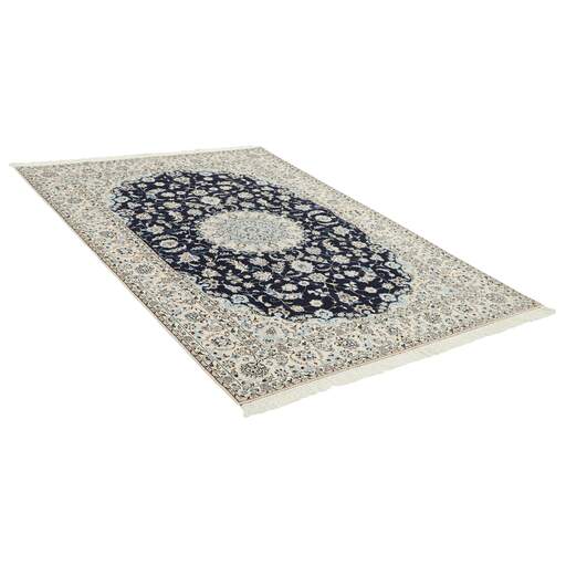 Naïn est une ville d'environ 50 000 habitants, située dans la province d'Ispahan. Elle a une importance historique, car c'était la dernière étape des routes caravanières avant Kavir-a-Lut, l'un des déserts qui s'étendent à travers le centre de l'Iran. La mosquée de Naïn est l'une des plus anciennes d'Iran et est bien mieux construite que les mosquées plus récentes et plus célèbres d'Ispahan. L'industrie de Naïn était traditionnellement axée sur la production de vêtements en laine, mais les tisserands se sont tournés vers la production de tapis lorsque la demande a chuté. Leurs nouveaux produits sont rapidement devenus célèbres, car les tisserands étaient qualifiés et utilisaient des matériaux de bonne qualité. La chaîne et la trame sont en coton, avec un velours en laine et des contours en soie. Parfois, la soie est davantage utilisée dans la base. Les couleurs sont raffinées ; des nuances d'ivoire et de crème, avec de petites zones de rouge, de vert et de bleu. Comme pour les tapis d'Ispahan, les motifs des tapis de Naïn sont également classiques. Les tapis Nain sont fabriqués dans toutes les tailles, y compris les très grands tapis allant jusqu'à 60 m², et certains d'entre eux ont un velours en soie pure. Le plus grand tapis Nain produit mesurait 20 mètres sur 20.