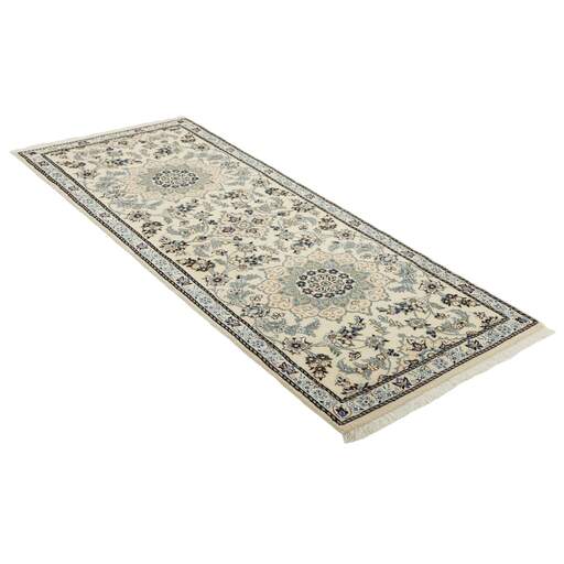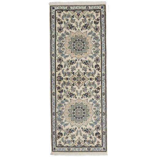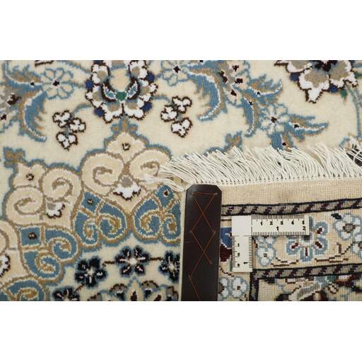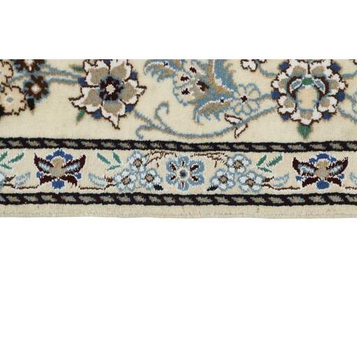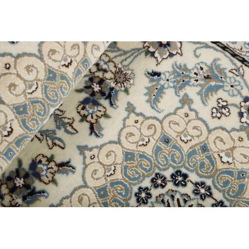 Naïn est une ville d'environ 50 000 habitants, située dans la province d'Ispahan. Elle a une importance historique, car c'était la dernière étape des routes caravanières avant Kavir-a-Lut, l'un des déserts qui s'étendent à travers le centre de l'Iran. La mosquée de Naïn est l'une des plus anciennes d'Iran et est bien mieux construite que les mosquées plus récentes et plus célèbres d'Ispahan. L'industrie de Naïn était traditionnellement axée sur la production de vêtements en laine, mais les tisserands se sont tournés vers la production de tapis lorsque la demande a chuté. Leurs nouveaux produits sont rapidement devenus célèbres, car les tisserands étaient qualifiés et utilisaient des matériaux de bonne qualité. La chaîne et la trame sont en coton, avec un velours en laine et des contours en soie. Parfois, la soie est davantage utilisée dans la base. Les couleurs sont raffinées ; des nuances d'ivoire et de crème, avec de petites zones de rouge, de vert et de bleu. Comme pour les tapis d'Ispahan, les motifs des tapis de Naïn sont également classiques. Les tapis Nain sont fabriqués dans toutes les tailles, y compris les très grands tapis allant jusqu'à 60 m², et certains d'entre eux ont un velours en soie pure. Le plus grand tapis Nain produit mesurait 20 mètres sur 20.