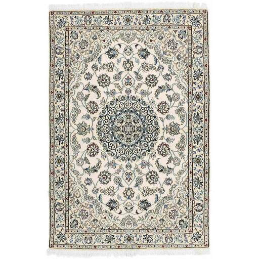 Naïn est une ville d'environ 50 000 habitants, située dans la province d'Ispahan. Elle a une importance historique, car c'était la dernière étape des routes caravanières avant Kavir-a-Lut, l'un des déserts qui s'étendent à travers le centre de l'Iran. La mosquée de Naïn est l'une des plus anciennes d'Iran et est bien mieux construite que les mosquées plus récentes et plus célèbres d'Ispahan. L'industrie de Naïn était traditionnellement axée sur la production de vêtements en laine, mais les tisserands se sont tournés vers la production de tapis lorsque la demande a chuté. Leurs nouveaux produits sont rapidement devenus célèbres, car les tisserands étaient qualifiés et utilisaient des matériaux de bonne qualité. La chaîne et la trame sont en coton, avec un velours en laine et des contours en soie. Parfois, la soie est davantage utilisée dans la base. Les couleurs sont raffinées ; des nuances d'ivoire et de crème, avec de petites zones de rouge, de vert et de bleu. Comme pour les tapis d'Ispahan, les motifs des tapis de Naïn sont également classiques. Les tapis Nain sont fabriqués dans toutes les tailles, y compris les très grands tapis allant jusqu'à 60 m², et certains d'entre eux ont un velours en soie pure. Le plus grand tapis Nain produit mesurait 20 mètres sur 20.