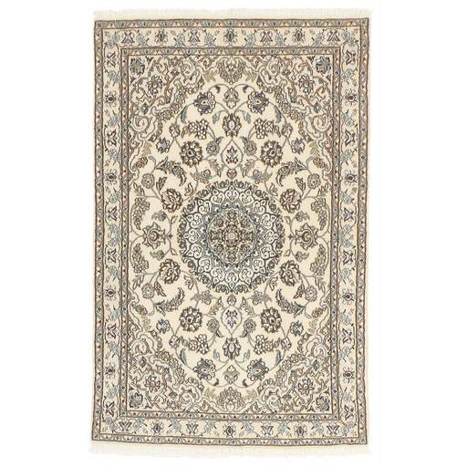 Naïn est une ville d'environ 50 000 habitants, située dans la province d'Ispahan. Elle a une importance historique, car c'était la dernière étape des routes caravanières avant Kavir-a-Lut, l'un des déserts qui s'étendent à travers le centre de l'Iran. La mosquée de Naïn est l'une des plus anciennes d'Iran et est bien mieux construite que les mosquées plus récentes et plus célèbres d'Ispahan. L'industrie de Naïn était traditionnellement axée sur la production de vêtements en laine, mais les tisserands se sont tournés vers la production de tapis lorsque la demande a chuté. Leurs nouveaux produits sont rapidement devenus célèbres, car les tisserands étaient qualifiés et utilisaient des matériaux de bonne qualité. La chaîne et la trame sont en coton, avec un velours en laine et des contours en soie. Parfois, la soie est davantage utilisée dans la base. Les couleurs sont raffinées ; des nuances d'ivoire et de crème, avec de petites zones de rouge, de vert et de bleu. Comme pour les tapis d'Ispahan, les motifs des tapis de Naïn sont également classiques. Les tapis Nain sont fabriqués dans toutes les tailles, y compris les très grands tapis allant jusqu'à 60 m², et certains d'entre eux ont un velours en soie pure. Le plus grand tapis Nain produit mesurait 20 mètres sur 20.