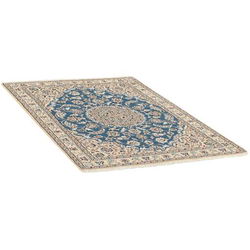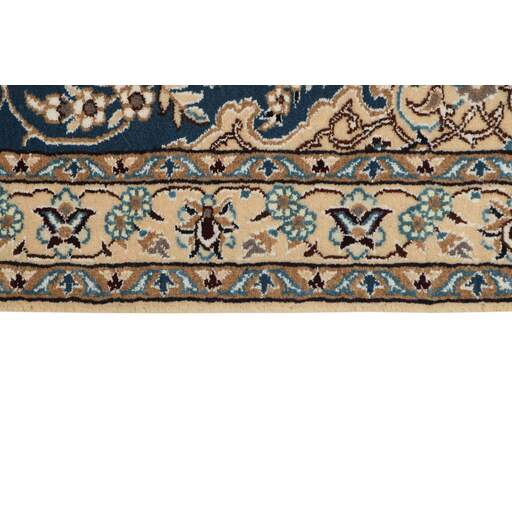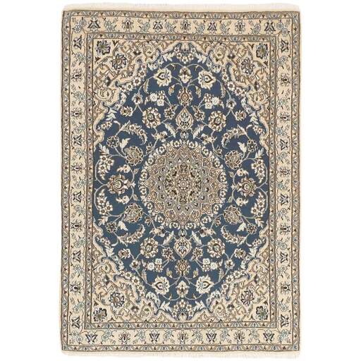 Naïn est une ville d'environ 50 000 habitants, située dans la province d'Ispahan. Elle a une importance historique, car c'était la dernière étape des routes caravanières avant Kavir-a-Lut, l'un des déserts qui s'étendent à travers le centre de l'Iran. La mosquée de Naïn est l'une des plus anciennes d'Iran et est bien mieux construite que les mosquées plus récentes et plus célèbres d'Ispahan. L'industrie de Naïn était traditionnellement axée sur la production de vêtements en laine, mais les tisserands se sont tournés vers la production de tapis lorsque la demande a chuté. Leurs nouveaux produits sont rapidement devenus célèbres, car les tisserands étaient qualifiés et utilisaient des matériaux de bonne qualité. La chaîne et la trame sont en coton, avec un velours en laine et des contours en soie. Parfois, la soie est davantage utilisée dans la base. Les couleurs sont raffinées ; des nuances d'ivoire et de crème, avec de petites zones de rouge, de vert et de bleu. Comme pour les tapis d'Ispahan, les motifs des tapis de Naïn sont également classiques. Les tapis Nain sont fabriqués dans toutes les tailles, y compris les très grands tapis allant jusqu'à 60 m², et certains d'entre eux ont un velours en soie pure. Le plus grand tapis Nain produit mesurait 20 mètres sur 20.