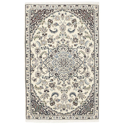Naïn est une ville d'environ 50 000 habitants, située dans la province d'Ispahan. Elle a une importance historique, car c'était la dernière étape des routes caravanières avant Kavir-a-Lut, l'un des déserts qui s'étendent à travers le centre de l'Iran. La mosquée de Naïn est l'une des plus anciennes d'Iran et est bien mieux construite que les mosquées plus récentes et plus célèbres d'Ispahan. L'industrie de Naïn était traditionnellement axée sur la production de vêtements en laine, mais les tisserands se sont tournés vers la production de tapis lorsque la demande a chuté. Leurs nouveaux produits sont rapidement devenus célèbres, car les tisserands étaient qualifiés et utilisaient des matériaux de bonne qualité. La chaîne et la trame sont en coton, avec un velours en laine et des contours en soie. Parfois, la soie est davantage utilisée dans la base. Les couleurs sont raffinées ; des nuances d'ivoire et de crème, avec de petites zones de rouge, de vert et de bleu. Comme pour les tapis d'Ispahan, les motifs des tapis de Naïn sont également classiques. Les tapis Nain sont fabriqués dans toutes les tailles, y compris les très grands tapis allant jusqu'à 60 m², et certains d'entre eux ont un velours en soie pure. Le plus grand tapis Nain produit mesurait 20 mètres sur 20.