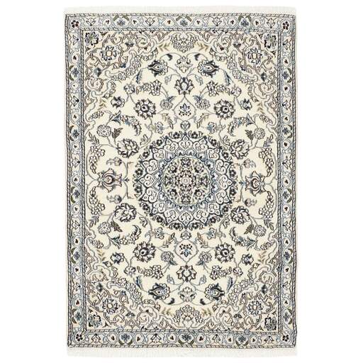 Naïn est une ville d'environ 50 000 habitants, située dans la province d'Ispahan. Elle a une importance historique, car c'était la dernière étape des routes caravanières avant Kavir-a-Lut, l'un des déserts qui s'étendent à travers le centre de l'Iran. La mosquée de Naïn est l'une des plus anciennes d'Iran et est bien mieux construite que les mosquées plus récentes et plus célèbres d'Ispahan. L'industrie de Naïn était traditionnellement axée sur la production de vêtements en laine, mais les tisserands se sont tournés vers la production de tapis lorsque la demande a chuté. Leurs nouveaux produits sont rapidement devenus célèbres, car les tisserands étaient qualifiés et utilisaient des matériaux de bonne qualité. La chaîne et la trame sont en coton, avec un velours en laine et des contours en soie. Parfois, la soie est davantage utilisée dans la base. Les couleurs sont raffinées ; des nuances d'ivoire et de crème, avec de petites zones de rouge, de vert et de bleu. Comme pour les tapis d'Ispahan, les motifs des tapis de Naïn sont également classiques. Les tapis Nain sont fabriqués dans toutes les tailles, y compris les très grands tapis allant jusqu'à 60 m², et certains d'entre eux ont un velours en soie pure. Le plus grand tapis Nain produit mesurait 20 mètres sur 20.