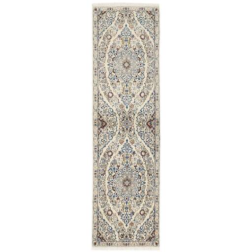 Naïn est une ville d'environ 50 000 habitants, située dans la province d'Ispahan. Elle a une importance historique, car c'était la dernière étape des routes caravanières avant Kavir-a-Lut, l'un des déserts qui s'étendent à travers le centre de l'Iran. La mosquée de Naïn est l'une des plus anciennes d'Iran et est bien mieux construite que les mosquées plus récentes et plus célèbres d'Ispahan. L'industrie de Naïn était traditionnellement axée sur la production de vêtements en laine, mais les tisserands se sont tournés vers la production de tapis lorsque la demande a chuté. Leurs nouveaux produits sont rapidement devenus célèbres, car les tisserands étaient qualifiés et utilisaient des matériaux de bonne qualité. La chaîne et la trame sont en coton, avec un velours en laine et des contours en soie. Parfois, la soie est davantage utilisée dans la base. Les couleurs sont raffinées ; des nuances d'ivoire et de crème, avec de petites zones de rouge, de vert et de bleu. Comme pour les tapis d'Ispahan, les motifs des tapis de Naïn sont également classiques. Les tapis Nain sont fabriqués dans toutes les tailles, y compris les très grands tapis allant jusqu'à 60 m², et certains d'entre eux ont un velours en soie pure. Le plus grand tapis Nain produit mesurait 20 mètres sur 20.