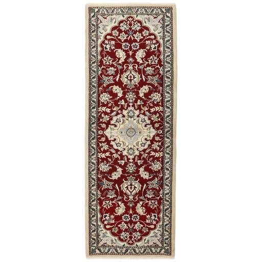 Naïn est une ville d'environ 50 000 habitants, située dans la province d'Ispahan. Elle a une importance historique, car c'était la dernière étape des routes caravanières avant Kavir-a-Lut, l'un des déserts qui s'étendent à travers le centre de l'Iran. La mosquée de Naïn est l'une des plus anciennes d'Iran et est bien mieux construite que les mosquées plus récentes et plus célèbres d'Ispahan. L'industrie de Naïn était traditionnellement axée sur la production de vêtements en laine, mais les tisserands se sont tournés vers la production de tapis lorsque la demande a chuté. Leurs nouveaux produits sont rapidement devenus célèbres, car les tisserands étaient qualifiés et utilisaient des matériaux de bonne qualité. La chaîne et la trame sont en coton, avec un velours en laine et des contours en soie. Parfois, la soie est davantage utilisée dans la base. Les couleurs sont raffinées ; des nuances d'ivoire et de crème, avec de petites zones de rouge, de vert et de bleu. Comme pour les tapis d'Ispahan, les motifs des tapis de Naïn sont également classiques. Les tapis Nain sont fabriqués dans toutes les tailles, y compris les très grands tapis allant jusqu'à 60 m², et certains d'entre eux ont un velours en soie pure. Le plus grand tapis Nain produit mesurait 20 mètres sur 20.