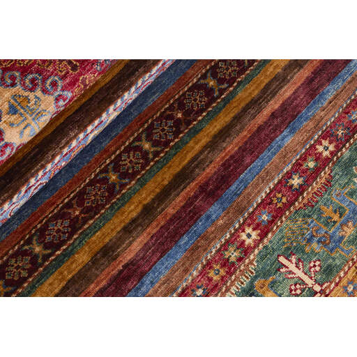 Les tapis de la collection Shall sont noués à la main par des Turkmènes dans le nord de l'Afghanistan. Ils sont fabriqués à 100 % en laine, noués avec la laine la plus fine des moutons des hautes terres. Les tapis sont très résistants et sont, en termes de qualité, les meilleurs tapis afghans disponibles.