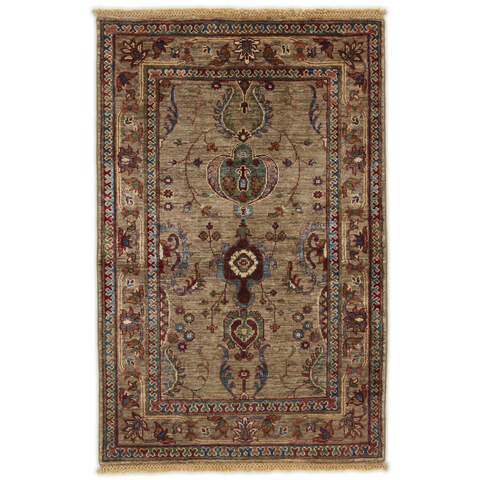 Les tapis de la collection Shall sont noués à la main par des Turkmènes dans le nord de l'Afghanistan. Ils sont fabriqués à 100 % en laine, noués avec la laine la plus fine des moutons des hautes terres. Les tapis sont très résistants et sont, en termes de qualité, les meilleurs tapis afghans disponibles.