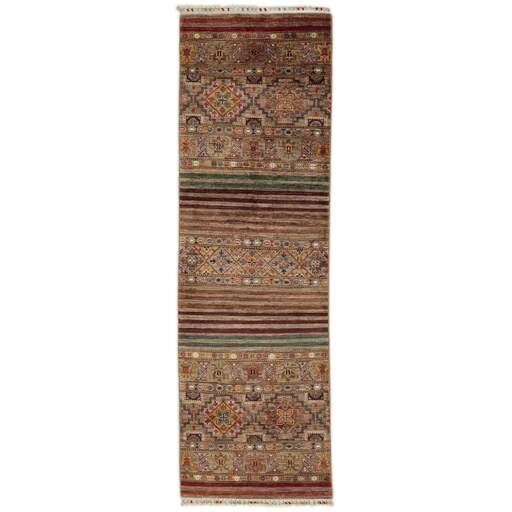 Les tapis de la collection Shall sont noués à la main par des Turkmènes dans le nord de l'Afghanistan. Ils sont fabriqués à 100 % en laine, noués avec la laine la plus fine des moutons des hautes terres. Les tapis sont très résistants et sont, en termes de qualité, les meilleurs tapis afghans disponibles.