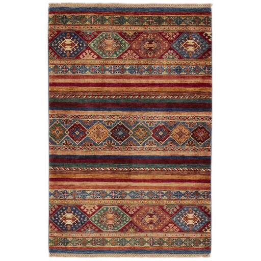 Les tapis de la collection Shall sont noués à la main par des Turkmènes dans le nord de l'Afghanistan. Ils sont fabriqués à 100 % en laine, noués avec la laine la plus fine des moutons des hautes terres. Les tapis sont très résistants et sont, en termes de qualité, les meilleurs tapis afghans disponibles.