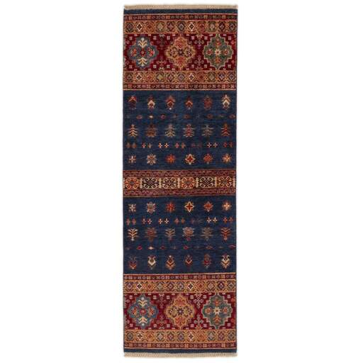 Les tapis de la collection Shall sont noués à la main par des Turkmènes dans le nord de l'Afghanistan. Ils sont fabriqués à 100 % en laine, noués avec la laine la plus fine des moutons des hautes terres. Les tapis sont très résistants et sont, en termes de qualité, les meilleurs tapis afghans disponibles.