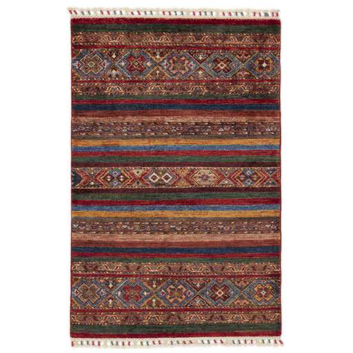 Les tapis de la collection Shall sont noués à la main par des Turkmènes dans le nord de l'Afghanistan. Ils sont fabriqués à 100 % en laine, noués avec la laine la plus fine des moutons des hautes terres. Les tapis sont très résistants et sont, en termes de qualité, les meilleurs tapis afghans disponibles.