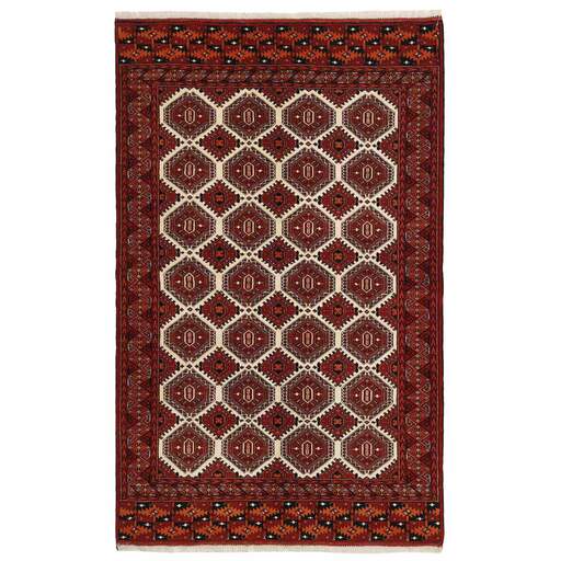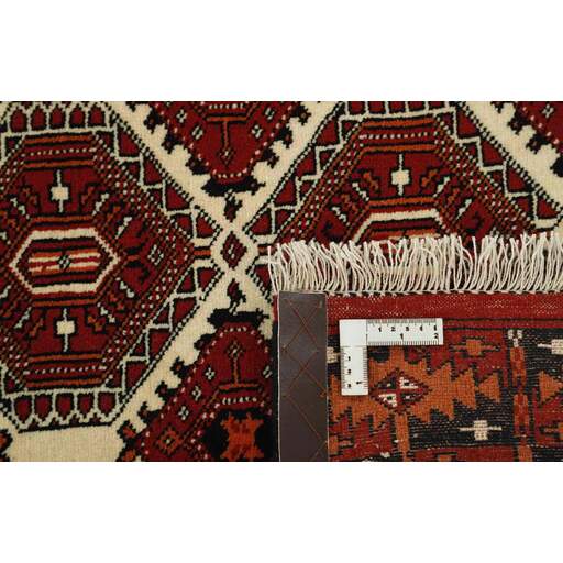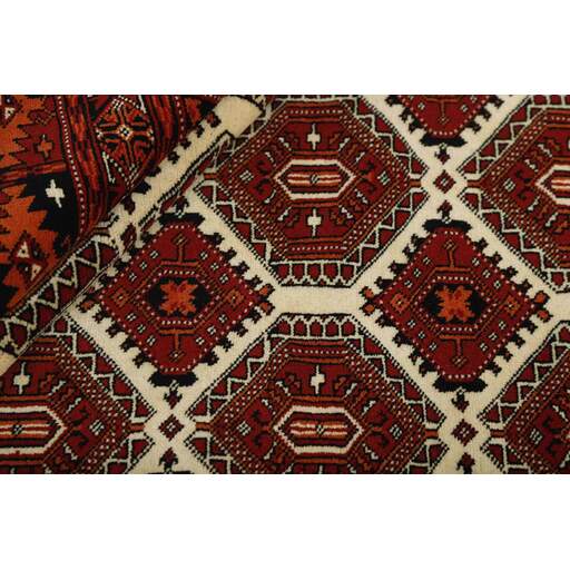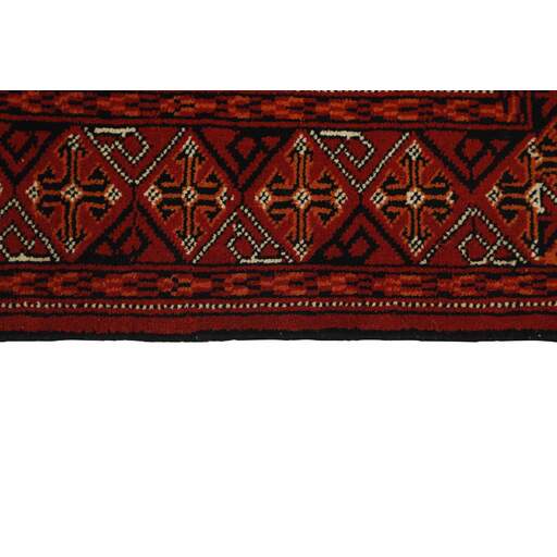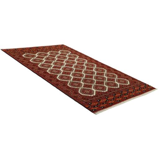 Les Turkmènes sont une tribu très importante, vivant principalement en Afghanistan et dans l'ancienne République soviétique du Turkménistan. La population iranienne est limitée à une zone autour de Gonbad-e-Kavus (500 000 habitants) dans la province de Mazandran. Les Turkmènes iraniens appartiennent à trois tribus : les Yomut, les Tekke et les Atabat. Les deux premières sont surtout célèbres pour leurs tapis. À l'origine, ils étaient des tribus nomades, mais la plupart des Turkmènes iraniens sont maintenant sédentaires, bien qu'ils aient souvent une tente ronde traditionnelle sur une place près de leurs maisons modernes en briques. Les tapis turkmènes sont traditionnellement faits de laine et ont une gamme limitée de couleurs : rouge, noir et ivoire, parfois mélangés à d'autres couleurs et à de la soie. Les motifs typiques sont des fleurs géométriques (güls) et des motifs octogonaux avec des variations selon la tribu. Selon la tradition, les tapis sont fabriqués en plusieurs tailles, selon l'endroit où ils doivent être utilisés dans la tente : comme rideaux de porte, couvre-sacs, etc. De très grands tapis sont parfois fabriqués sur commande pour les chefs de tribu.