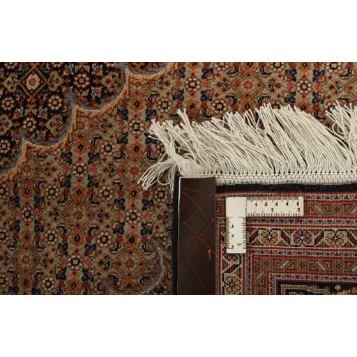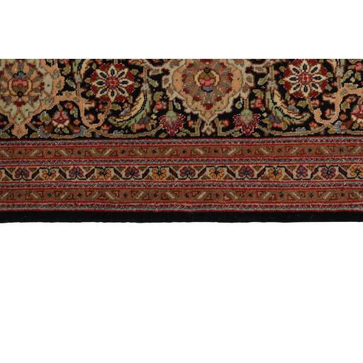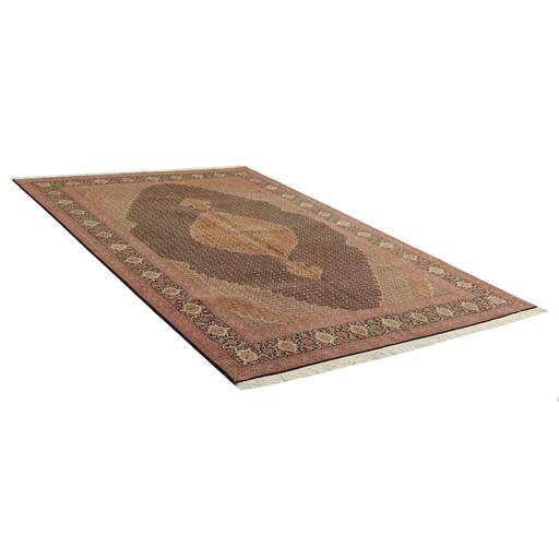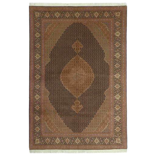 Tabriz est l'une des villes les plus importantes d'Iran. Elle compte 1,5 million d'habitants et est la capitale de la province de l'Azerbaïdjan oriental. Étant l'une des plus grandes régions productrices de tapis de Perse, les tapis de Tabriz sont exportés dans toutes les qualités, du plus simple au plus luxueux. Les meilleures qualités sont divisées en deux catégories principales : le Tabriz Mahi, également connu sous le nom de « motif de poisson de Tabriz » (le motif en forme de feuille du tapis est appelé Mahi, ce qui signifie « poisson »), et le Tabriz Nagsheh, qui signifie motif. Dans ce contexte, il fait référence aux motifs et symboles figuratifs de Keshan et d'Ispahan, qui ont inspiré le tapis Tabriz Nagsheh. Les noueurs sont incroyablement habiles et ils ont inventé un type spécial de crochet, qu'ils peuvent utiliser à la place de leurs doigts pour nouer les nœuds. La chaîne et la trame sont en coton, et le velours est en laine, souvent avec de la soie tissée dans les qualités les plus fines. Les couleurs des meilleurs tapis sont fines et raffinées. Les qualités les plus brutes ont des couleurs vives et sont rarement exportées. Les tapis de Tabriz sont souvent numérotés, comme Tabriz 50, ce qui est une indication de qualité. Le Tabriz 50 a 500 000 nœuds par m2. Les tapis de Tabriz sont considérés comme étant durables et de très haute qualité.