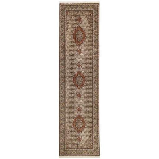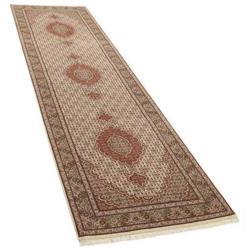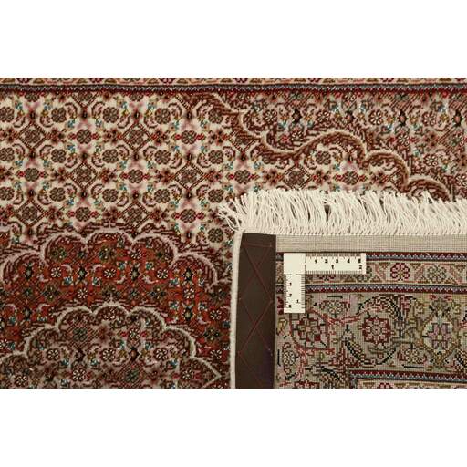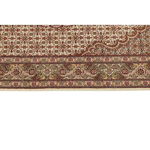 Tabriz est l'une des villes les plus importantes d'Iran. Elle compte 1,5 million d'habitants et est la capitale de la province de l'Azerbaïdjan oriental. Étant l'une des plus grandes régions productrices de tapis de Perse, les tapis de Tabriz sont exportés dans toutes les qualités, du plus simple au plus luxueux. Les meilleures qualités sont divisées en deux catégories principales : le Tabriz Mahi, également connu sous le nom de « motif de poisson de Tabriz » (le motif en forme de feuille du tapis est appelé Mahi, ce qui signifie « poisson »), et le Tabriz Nagsheh, qui signifie motif. Dans ce contexte, il fait référence aux motifs et symboles figuratifs de Keshan et d'Ispahan, qui ont inspiré le tapis Tabriz Nagsheh. Les noueurs sont incroyablement habiles et ils ont inventé un type spécial de crochet, qu'ils peuvent utiliser à la place de leurs doigts pour nouer les nœuds. La chaîne et la trame sont en coton, et le velours est en laine, souvent avec de la soie tissée dans les qualités les plus fines. Les couleurs des meilleurs tapis sont fines et raffinées. Les qualités les plus brutes ont des couleurs vives et sont rarement exportées. Les tapis de Tabriz sont souvent numérotés, comme Tabriz 50, ce qui est une indication de qualité. Le Tabriz 50 a 500 000 nœuds par m2. Les tapis de Tabriz sont considérés comme étant durables et de très haute qualité.