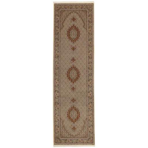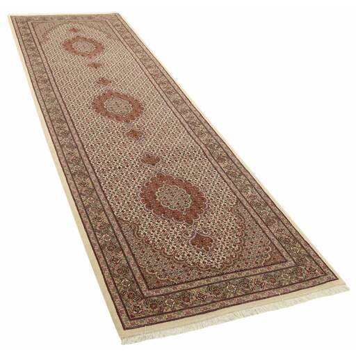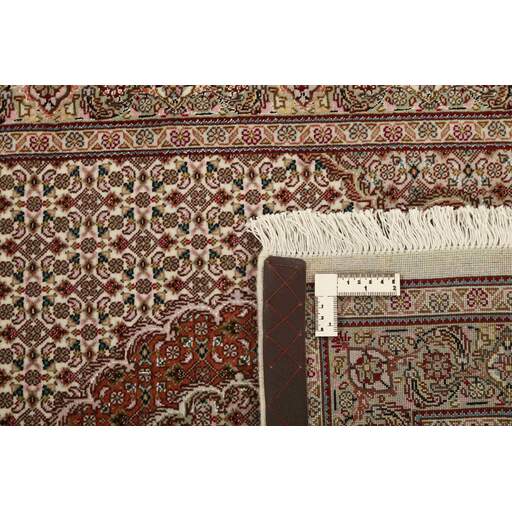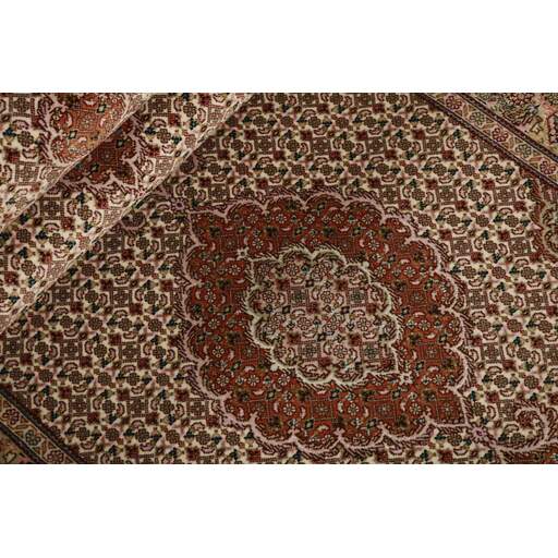 Tabriz est l'une des villes les plus importantes d'Iran. Elle compte 1,5 million d'habitants et est la capitale de la province de l'Azerbaïdjan oriental. Étant l'une des plus grandes régions productrices de tapis de Perse, les tapis de Tabriz sont exportés dans toutes les qualités, du plus simple au plus luxueux. Les meilleures qualités sont divisées en deux catégories principales : le Tabriz Mahi, également connu sous le nom de « motif de poisson de Tabriz » (le motif en forme de feuille du tapis est appelé Mahi, ce qui signifie « poisson »), et le Tabriz Nagsheh, qui signifie motif. Dans ce contexte, il fait référence aux motifs et symboles figuratifs de Keshan et d'Ispahan, qui ont inspiré le tapis Tabriz Nagsheh. Les noueurs sont incroyablement habiles et ils ont inventé un type spécial de crochet, qu'ils peuvent utiliser à la place de leurs doigts pour nouer les nœuds. La chaîne et la trame sont en coton, et le velours est en laine, souvent avec de la soie tissée dans les qualités les plus fines. Les couleurs des meilleurs tapis sont fines et raffinées. Les qualités les plus brutes ont des couleurs vives et sont rarement exportées. Les tapis de Tabriz sont souvent numérotés, comme Tabriz 50, ce qui est une indication de qualité. Le Tabriz 50 a 500 000 nœuds par m2. Les tapis de Tabriz sont considérés comme étant durables et de très haute qualité.