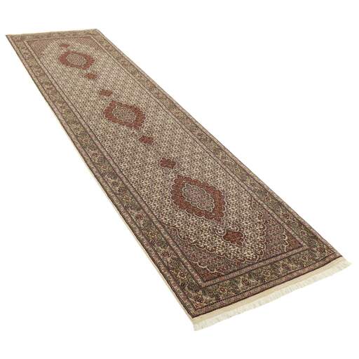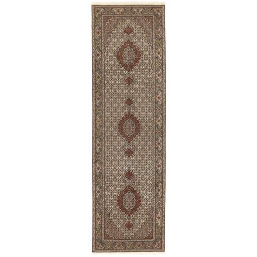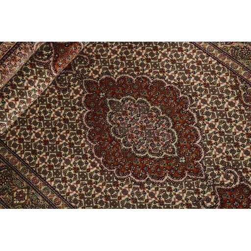 Tabriz est l'une des villes les plus importantes d'Iran. Elle compte 1,5 million d'habitants et est la capitale de la province de l'Azerbaïdjan oriental. Étant l'une des plus grandes régions productrices de tapis de Perse, les tapis de Tabriz sont exportés dans toutes les qualités, du plus simple au plus luxueux. Les meilleures qualités sont divisées en deux catégories principales : le Tabriz Mahi, également connu sous le nom de « motif de poisson de Tabriz » (le motif en forme de feuille du tapis est appelé Mahi, ce qui signifie « poisson »), et le Tabriz Nagsheh, qui signifie motif. Dans ce contexte, il fait référence aux motifs et symboles figuratifs de Keshan et d'Ispahan, qui ont inspiré le tapis Tabriz Nagsheh. Les noueurs sont incroyablement habiles et ils ont inventé un type spécial de crochet, qu'ils peuvent utiliser à la place de leurs doigts pour nouer les nœuds. La chaîne et la trame sont en coton, et le velours est en laine, souvent avec de la soie tissée dans les qualités les plus fines. Les couleurs des meilleurs tapis sont fines et raffinées. Les qualités les plus brutes ont des couleurs vives et sont rarement exportées. Les tapis de Tabriz sont souvent numérotés, comme Tabriz 50, ce qui est une indication de qualité. Le Tabriz 50 a 500 000 nœuds par m2. Les tapis de Tabriz sont considérés comme étant durables et de très haute qualité.