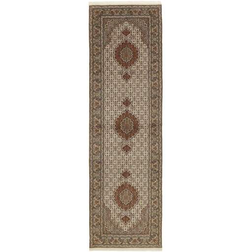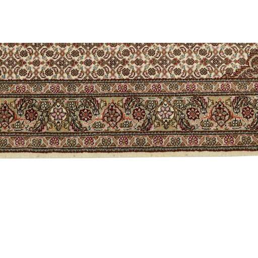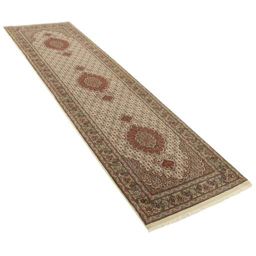 Tabriz est l'une des villes les plus importantes d'Iran. Elle compte 1,5 million d'habitants et est la capitale de la province de l'Azerbaïdjan oriental. Étant l'une des plus grandes régions productrices de tapis de Perse, les tapis de Tabriz sont exportés dans toutes les qualités, du plus simple au plus luxueux. Les meilleures qualités sont divisées en deux catégories principales : le Tabriz Mahi, également connu sous le nom de « motif de poisson de Tabriz » (le motif en forme de feuille du tapis est appelé Mahi, ce qui signifie « poisson »), et le Tabriz Nagsheh, qui signifie motif. Dans ce contexte, il fait référence aux motifs et symboles figuratifs de Keshan et d'Ispahan, qui ont inspiré le tapis Tabriz Nagsheh. Les noueurs sont incroyablement habiles et ils ont inventé un type spécial de crochet, qu'ils peuvent utiliser à la place de leurs doigts pour nouer les nœuds. La chaîne et la trame sont en coton, et le velours est en laine, souvent avec de la soie tissée dans les qualités les plus fines. Les couleurs des meilleurs tapis sont fines et raffinées. Les qualités les plus brutes ont des couleurs vives et sont rarement exportées. Les tapis de Tabriz sont souvent numérotés, comme Tabriz 50, ce qui est une indication de qualité. Le Tabriz 50 a 500 000 nœuds par m2. Les tapis de Tabriz sont considérés comme étant durables et de très haute qualité.