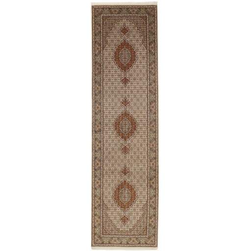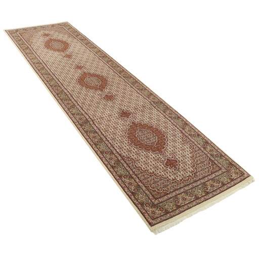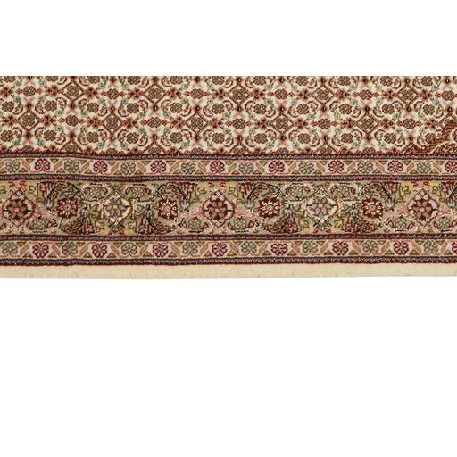 Tabriz est l'une des villes les plus importantes d'Iran. Elle compte 1,5 million d'habitants et est la capitale de la province de l'Azerbaïdjan oriental. Étant l'une des plus grandes régions productrices de tapis de Perse, les tapis de Tabriz sont exportés dans toutes les qualités, du plus simple au plus luxueux. Les meilleures qualités sont divisées en deux catégories principales : le Tabriz Mahi, également connu sous le nom de « motif de poisson de Tabriz » (le motif en forme de feuille du tapis est appelé Mahi, ce qui signifie « poisson »), et le Tabriz Nagsheh, qui signifie motif. Dans ce contexte, il fait référence aux motifs et symboles figuratifs de Keshan et d'Ispahan, qui ont inspiré le tapis Tabriz Nagsheh. Les noueurs sont incroyablement habiles et ils ont inventé un type spécial de crochet, qu'ils peuvent utiliser à la place de leurs doigts pour nouer les nœuds. La chaîne et la trame sont en coton, et le velours est en laine, souvent avec de la soie tissée dans les qualités les plus fines. Les couleurs des meilleurs tapis sont fines et raffinées. Les qualités les plus brutes ont des couleurs vives et sont rarement exportées. Les tapis de Tabriz sont souvent numérotés, comme Tabriz 50, ce qui est une indication de qualité. Le Tabriz 50 a 500 000 nœuds par m2. Les tapis de Tabriz sont considérés comme étant durables et de très haute qualité.