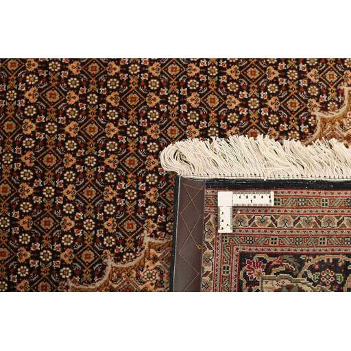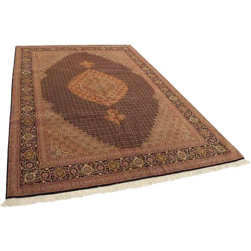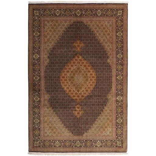 Tabriz est l'une des villes les plus importantes d'Iran. Elle compte 1,5 million d'habitants et est la capitale de la province de l'Azerbaïdjan oriental. Étant l'une des plus grandes régions productrices de tapis de Perse, les tapis de Tabriz sont exportés dans toutes les qualités, du plus simple au plus luxueux. Les meilleures qualités sont divisées en deux catégories principales : le Tabriz Mahi, également connu sous le nom de « motif de poisson de Tabriz » (le motif en forme de feuille du tapis est appelé Mahi, ce qui signifie « poisson »), et le Tabriz Nagsheh, qui signifie motif. Dans ce contexte, il fait référence aux motifs et symboles figuratifs de Keshan et d'Ispahan, qui ont inspiré le tapis Tabriz Nagsheh. Les noueurs sont incroyablement habiles et ils ont inventé un type spécial de crochet, qu'ils peuvent utiliser à la place de leurs doigts pour nouer les nœuds. La chaîne et la trame sont en coton, et le velours est en laine, souvent avec de la soie tissée dans les qualités les plus fines. Les couleurs des meilleurs tapis sont fines et raffinées. Les qualités les plus brutes ont des couleurs vives et sont rarement exportées. Les tapis de Tabriz sont souvent numérotés, comme Tabriz 50, ce qui est une indication de qualité. Le Tabriz 50 a 500 000 nœuds par m2. Les tapis de Tabriz sont considérés comme étant durables et de très haute qualité.