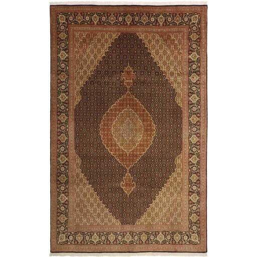 Tabriz est l'une des villes les plus importantes d'Iran. Elle compte 1,5 million d'habitants et est la capitale de la province de l'Azerbaïdjan oriental. Étant l'une des plus grandes régions productrices de tapis de Perse, les tapis de Tabriz sont exportés dans toutes les qualités, du plus simple au plus luxueux. Les meilleures qualités sont divisées en deux catégories principales : le Tabriz Mahi, également connu sous le nom de « motif de poisson de Tabriz » (le motif en forme de feuille du tapis est appelé Mahi, ce qui signifie « poisson »), et le Tabriz Nagsheh, qui signifie motif. Dans ce contexte, il fait référence aux motifs et symboles figuratifs de Keshan et d'Ispahan, qui ont inspiré le tapis Tabriz Nagsheh. Les noueurs sont incroyablement habiles et ils ont inventé un type spécial de crochet, qu'ils peuvent utiliser à la place de leurs doigts pour nouer les nœuds. La chaîne et la trame sont en coton, et le velours est en laine, souvent avec de la soie tissée dans les qualités les plus fines. Les couleurs des meilleurs tapis sont fines et raffinées. Les qualités les plus brutes ont des couleurs vives et sont rarement exportées. Les tapis de Tabriz sont souvent numérotés, comme Tabriz 50, ce qui est une indication de qualité. Le Tabriz 50 a 500 000 nœuds par m2. Les tapis de Tabriz sont considérés comme étant durables et de très haute qualité.