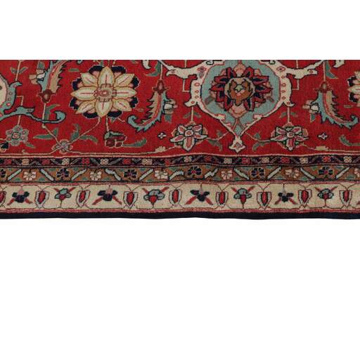Tabriz est l'une des villes les plus importantes d'Iran. Elle compte 1,5 million d'habitants et est la capitale de la province de l'Azerbaïdjan oriental. Étant l'une des plus grandes régions productrices de tapis de Perse, les tapis de Tabriz sont exportés dans toutes les qualités, du plus simple au plus luxueux. Les meilleures qualités sont divisées en deux catégories principales : le Tabriz Mahi, également connu sous le nom de « motif de poisson de Tabriz » (le motif en forme de feuille du tapis est appelé Mahi, ce qui signifie « poisson »), et le Tabriz Nagsheh, qui signifie motif. Dans ce contexte, il fait référence aux motifs et symboles figuratifs de Keshan et d'Ispahan, qui ont inspiré le tapis Tabriz Nagsheh. Les noueurs sont incroyablement habiles et ils ont inventé un type spécial de crochet, qu'ils peuvent utiliser à la place de leurs doigts pour nouer les nœuds. La chaîne et la trame sont en coton, et le velours est en laine, souvent avec de la soie tissée dans les qualités les plus fines. Les couleurs des meilleurs tapis sont fines et raffinées. Les qualités les plus brutes ont des couleurs vives et sont rarement exportées. Les tapis de Tabriz sont souvent numérotés, comme Tabriz 50, ce qui est une indication de qualité. Le Tabriz 50 a 500 000 nœuds par m2. Les tapis de Tabriz sont considérés comme étant durables et de très haute qualité.