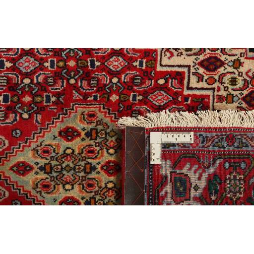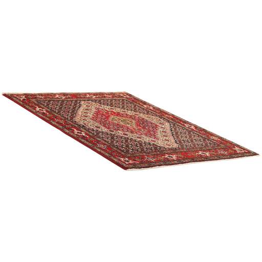 Seneh, dans le Sanadaj, est la capitale de la province du Kurdistan, au nord-ouest de l'Iran. Elle compte environ 300 000 habitants, la plupart étant des Kurdes de la tribu Gurani. Les tapis Seneh sont facilement reconnaissables à leur méthode de nouage, ainsi qu'aux couleurs des motifs et à la laine utilisée. Ils ont généralement une trame simple et le dos des tapis est souvent grossier et granuleux, car la laine est filée à la main avant le nouage. Parfois, on peut voir un nouage ferme de type Bidjar. Les couleurs caractéristiques sont le bleu profond, le vert, le rouge foncé et le blanc. La laine Seneh est l'une des meilleures qualités de laine en Iran : ferme et durable, avec un éclat profond, résultat de la haute altitude, de la végétation clairsemée et des températures extrêmes. Les noueurs tribaux de la région utilisent le même type de laine. Au 19e siècle, les tapis Seneh étaient célèbres pour leur finesse et la variété de leurs motifs, tandis que la production moderne est moins fine et moins variée. Le nœud Ghiordis est généralement utilisé, mais vous trouverez également des tapis de Seneh avec le nœud Seneh. Le tapis Seneh typique présente un champ à motifs Herati, avec une série de médaillons géométriques, les uns dans les autres, chacun répétant le motif avec une couleur de fond différente. Parfois, on retrouve des motifs plus anciens et plus uniformes : Boteh, Vekili, Gol-Farang (bouquets de fleurs naturalistes de style européen) ou Gol-i-Bulbul (oiseaux et fleurs).