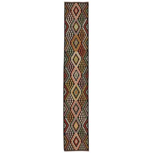 Les tapis kelim afghans sont tissés à la main par les Turkmènes du nord de l'Afghanistan. Kelim est le nom d'un tissage persan courant, mais aussi de la technologie utilisée dans sa production. Les kelims sont principalement fabriqués par des nomades et sont des tapis sans poils, qui sont également utilisés pour les sacs, comme décoration murale ou comme rideaux pour les tentes. Une gamme de couleurs naturelles avec des symboles géométriques et des octogones est utilisée.