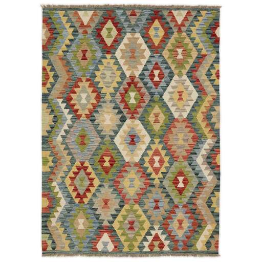 Les tapis kelim afghans sont tissés à la main par les Turkmènes du nord de l'Afghanistan. Kelim est le nom d'un tissage persan courant, mais aussi de la technologie utilisée dans sa production. Les kelims sont principalement fabriqués par des nomades et sont des tapis sans poils, qui sont également utilisés pour les sacs, comme décoration murale ou comme rideaux pour les tentes. Une gamme de couleurs naturelles avec des symboles géométriques et des octogones est utilisée.