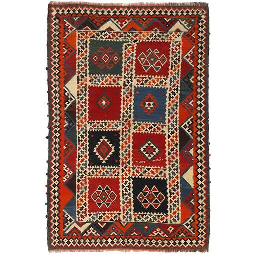 Les tapis persans anciens sont souvent de forme oblongue et étaient à l'origine utilisés dans les tentes des nomades. Les tapis kelim sont souvent placés sur d'autres tapis pour servir d'isolant. Les tapis ont souvent jusqu'à 50 ans, parfois plus de 80 ans. Les nomades nouent ou tissent eux-mêmes les tapis dont ils ont besoin et les utilisent à de nombreuses fins différentes, comme sacoches pour chameaux et ânes, mais ils sont surtout utilisés pour les motos, pour ranger les vêtements, pour s'asseoir et comme couvertures de couchage.