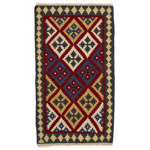 Ces kilims sont des tapis tissés à plat, tissés par les nomades de l'ouest de la Perse. Une technique de tissage spéciale est utilisée, ce qui donne au tapis une surface plus fine et plus plate, sans poils. Les kilims sont également plus rapides à produire que les tapis orientaux courants. Les couleurs sont naturelles et aucun tapis ne se ressemble. Les kilims sont produits dans plusieurs régions et sous de nombreux noms, mais les types de kilim les plus connus sont Seneh, Sumak, Fars et Kelim Gashghai.